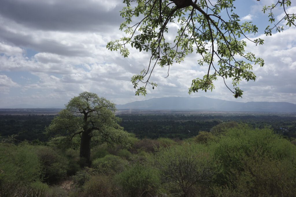 Na het ontbijt hebben we buiten het nationaal park afgesproken met een gids om een “Great Rift Valley hike” te doen. We klimmen een stukje langs de wand van de Riftvallei omhoog, terwijl onze gids ons op interessante zaken wijst, zoals geneeskrachtige planten, vogels enz… Bovendien genieten we nog van een paar vergezichten op Lake Manyara. Na een tijdje dalen we af door een mooi tropisch bos en belanden uiteindelijk in een grote bananenplantage. We komen meer te weten over de soorten bananen en het proces van kweek tot banaan. Aan het einde van de wandeling komen we in een dorpje van de Maconde, een stam die oorspronkelijk uit Mozambique afkomstig is en bekend is omwille van hun fijne beeldhouwwerk. Ook passeren we nog langs een lokale academie, waar schilderijen tentoongesteld en uiteraard ook te koop aangeboden worden.
