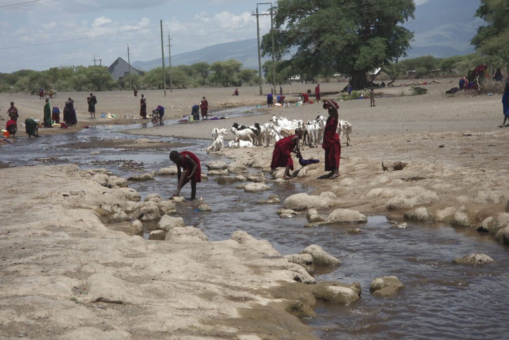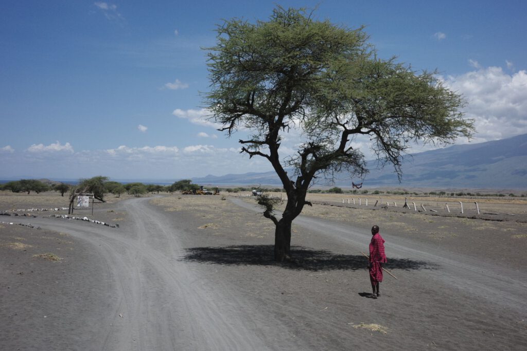 Na de wandeling wacht ons een lange rit langs de wand van de Great Rift door een zeer dor landschap, waar we hier en daar Masai met hun kuddes tegenkomen. We picknicken in de auto om beschut te zijn tegen de zon, want hier staan bijna geen bomen.
