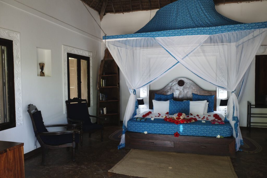 20-11-2025 2025 Tanzania en Zanzibar, Op reis Geen reactieIn 40 minuten rijden we van Stone Town naar het Fumba schiereiland. Dit ligt aan de Menai Baai, een beschermd marinereservaat. We logeren in de Fumba Beach lodge, een tropisch paradijsje aan het strand. Vanuit onze grote hut in het weelderige groen kijken we uit over de oceaan. De kleine elephant shrew, een soort van grote spitsmuis op hoge poten met een slurfje, scharrelt rond in het struikgewas. Als je ze wil zien moet je wel stil zijn, want ze zijn heel schuchter. Bij zonsondergang klimmen we in de grote baobab, waar men een platform heeft gemonteerd van waar je het schouwspel van het einde van de dag kan bewonderen. We zien de vissers van het nabije dorpje uitvaren. Als we terugkomen van het diner, spotten we bushbabies (galago’s) in de bomen rond onze hut.