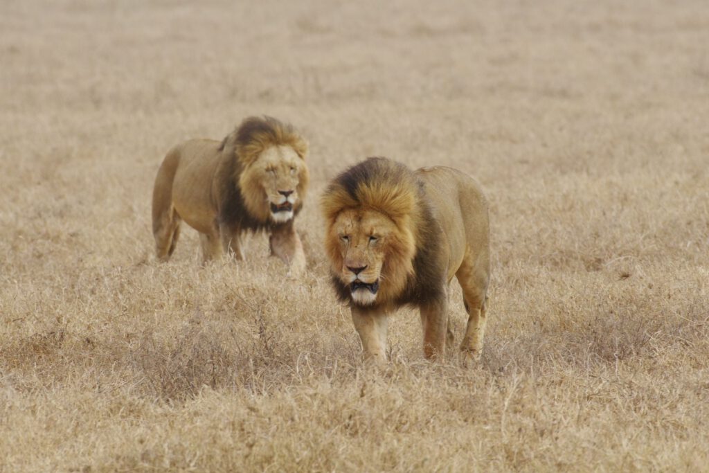 Om 7u ’s morgens dalen we al af in de krater, een hoogteverschil van 600m. Na nog geen 10 minuten beneden in de krater, komen we 2 volwassenen mannetjesleeuwen tegen, indrukwekkende verschijningen! Er staan tientallen andere safari voertuigen naar het spektakel te kijken, een beetje veel eigenlijk.