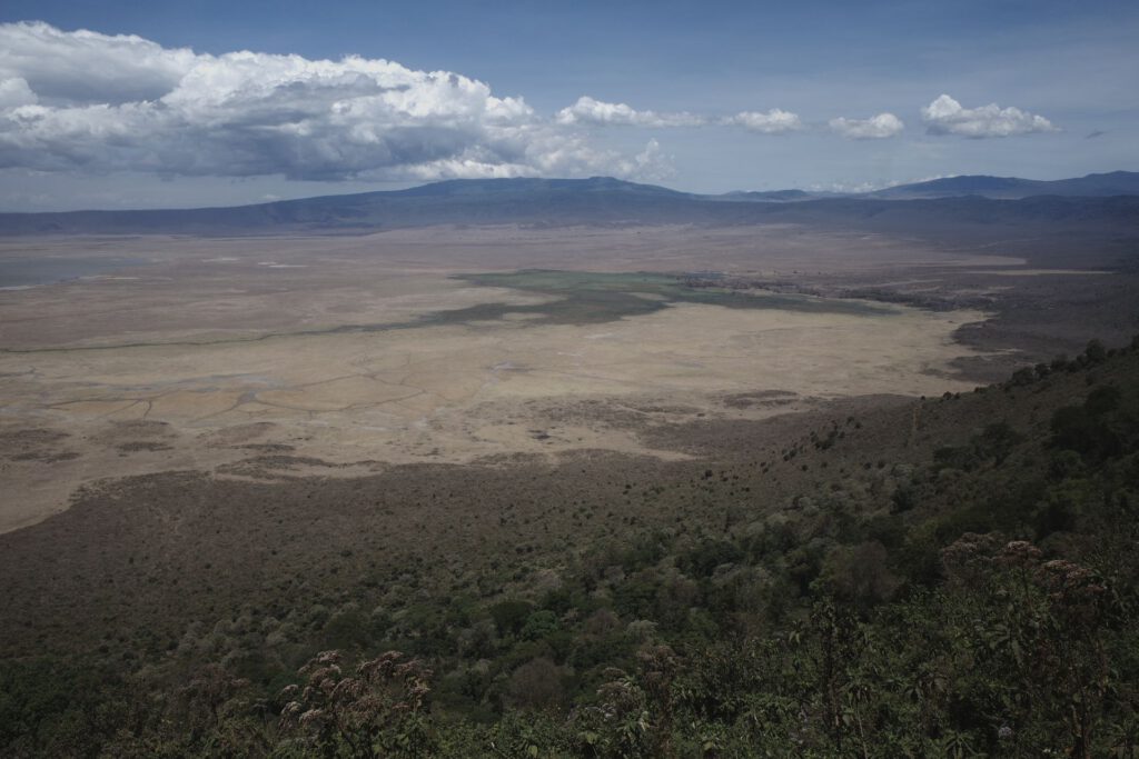 De kraterrand bevind zich op meer dan 2000 meter hoogte en is begroeid met een weelderig groen bos. Gezien dit een Conservation area is, is het aan de Masai toegelaten hier te wonen en hun kuddes te laten grazen. Na een picknicklunch pikken we een gewapende ranger op en gaan met hem op pad voor een wandeling langs de kraterrand. Na een uurtje wandelen komen we aan een ander schitterend uitzicht over de krater. We kunnen echter niet verder vanwege de rook. De Masai zijn stukken land aan het afbranden, zodat er vers gras kan groeien met de komende regens. We bellen Aniny om ons elders te komen oppikken, waardoor onze tocht ietsje wordt ingekort.