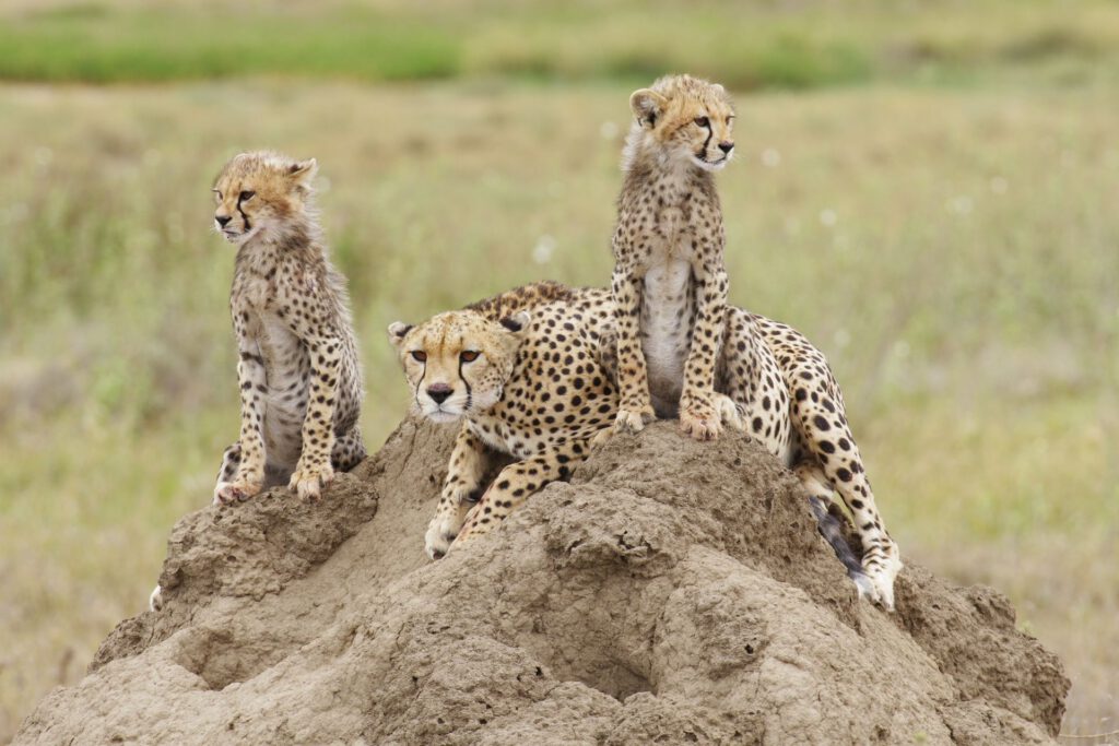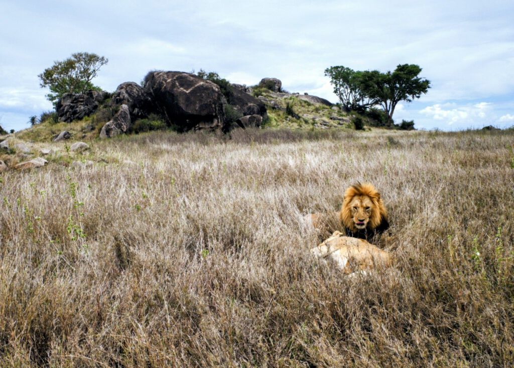 14-11-2025 8:18 pm 2025 Tanzania en Zanzibar, Op reisDe eerste dag in Serengeti trekken we naar het oosten vanuit het centrale gedeelte waar we verblijven. Dit is wat hoger gelegen, waardoor er een stevige wind waait. Er zijn hier ook een stuk minder andere voertuigen. Volgens Aniny omdat de meeste gidsen de moeite niet doen het centrale gedeelte te verlaten. We zien er topi en hartebeest en een aantal gieren die zich tegoed doen aan het karkas van een gazelle. Op aangeven van een andere wagen die van de andere richting komt, zien we naast een waterpoel een jachtluipaard met haar 2 jongen lopen. Ze nemen plaats boven op een termietenheuvel naast de weg; waw! Ze doen dit om een beter zicht te hebben over mogelijke prooi in de savanne. In de namiddag zien we veel leeuwen, die zich ophouden in de schaduw in de buurt van de “kopjes”, rotsformaties die her en der over de savanne verspreid zijn.