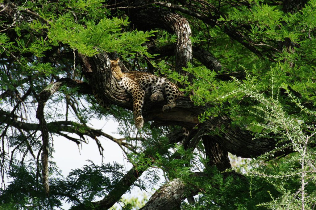 Na de picknick zien we eindelijk een luipaard in een boom, en wat later zelfs nog een tweede! We spotten ook 2 bat-eared foxes, die zich normaal niet makkelijk laten zien.